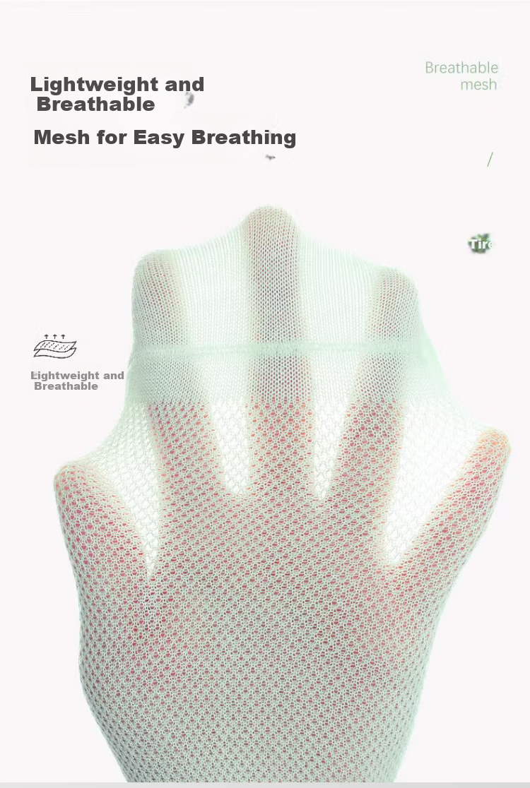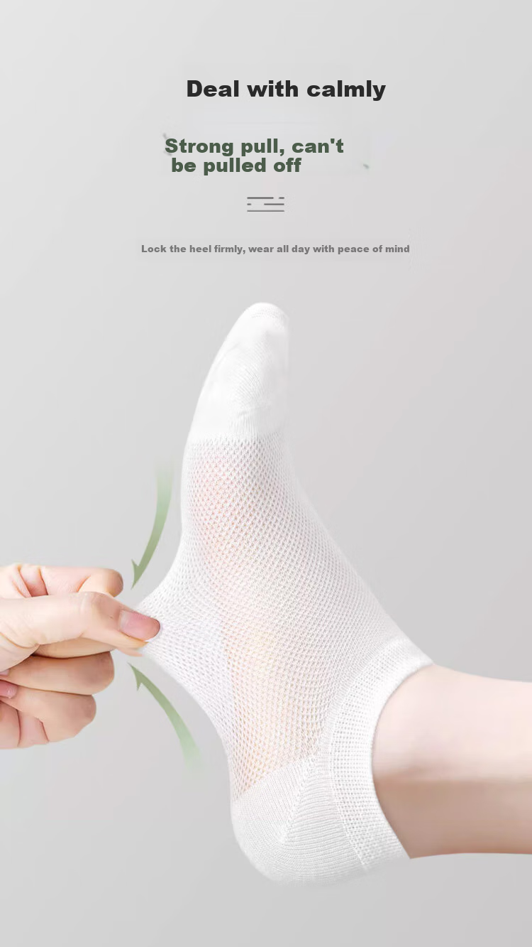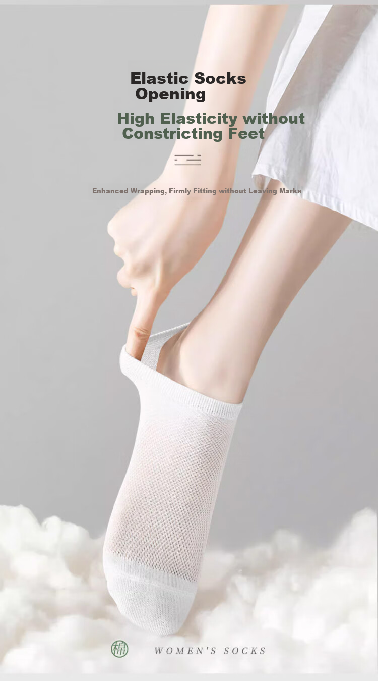 Design: Breathable mesh for comfortable wear, non-slip heel grip, elastic cuff for a secure fit