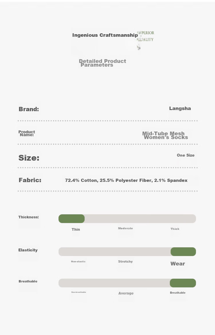 **Product Name:** Mid-Calf Breathable Mesh Women's Socks