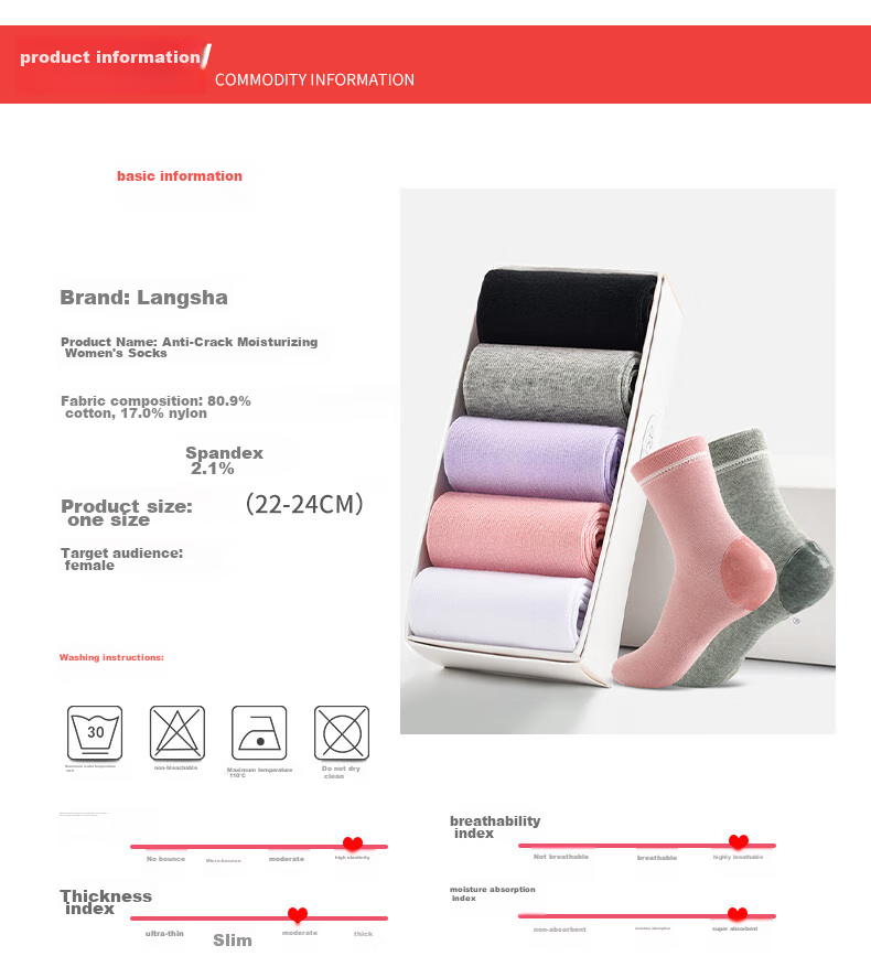 Product Name: Moisturizing and Crack-Resistant Mid-Calf Women's Socks