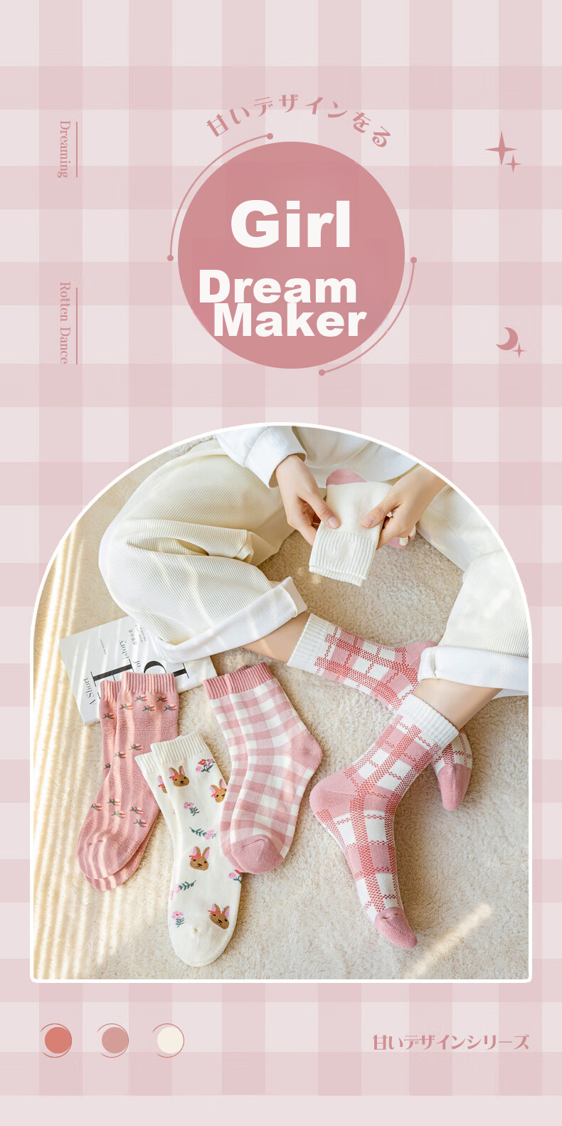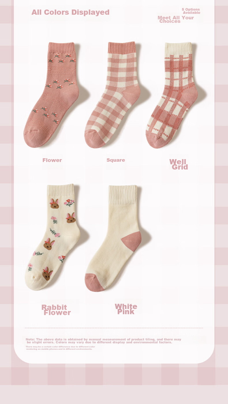 **Color Options:** 5 designs available - floral, checkered, grid, rabbit floral, white-pink.