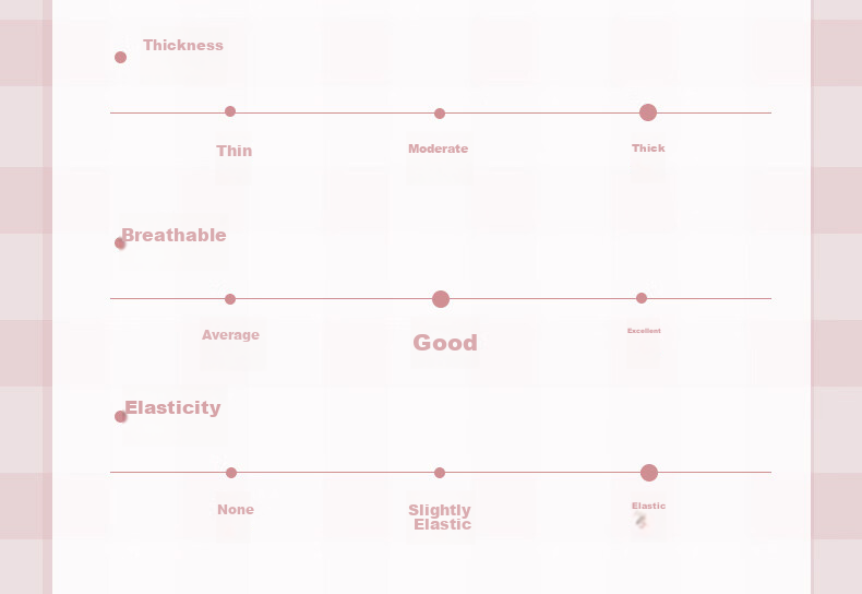 **Thickness:** Thin, moderate, thick. Breathable.