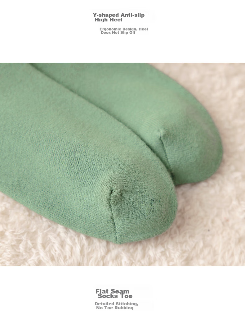 Features: Lycra elastic band for durable sock mouth, Y-shaped anti-slip heel, anatomically designed to prevent slipping, finely stitched toe for comfort