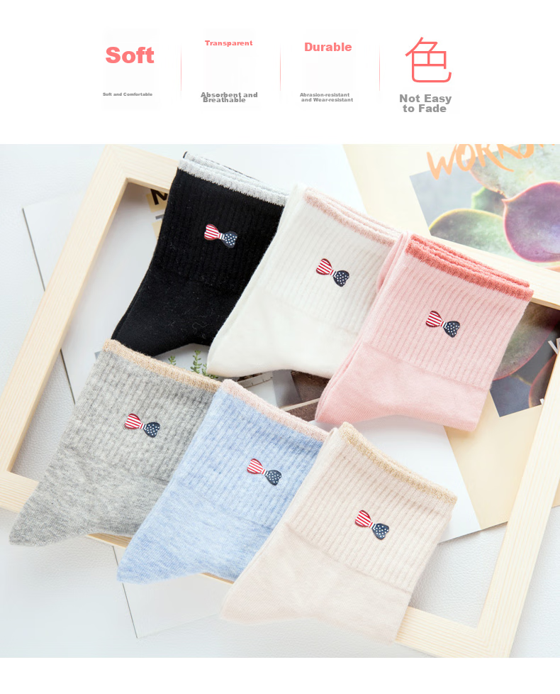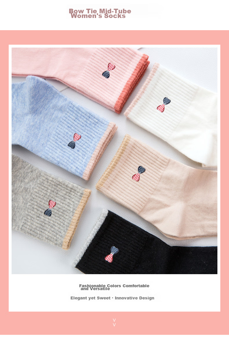 **Product Name:** Solid Color Bow Mid-Calf Women's Socks