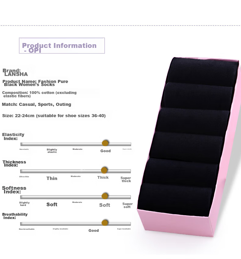 **Product Name:** Fashion Pure Black Women's Socks