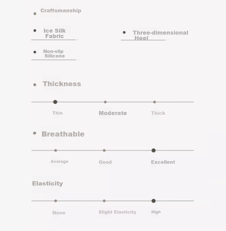 **Craft:** Ice Silk Fabric, 3D Heel, Non-Slip Silicone