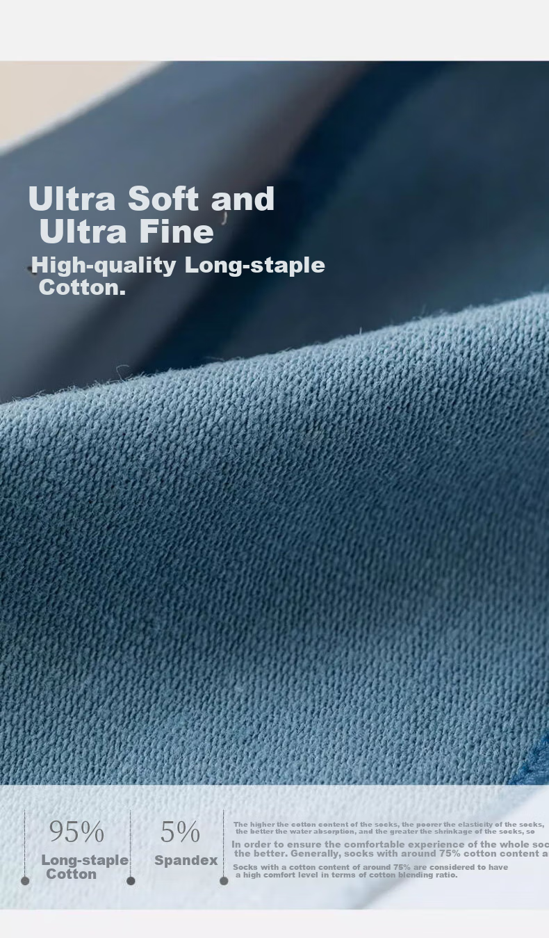 The higher the cotton content in socks (up to 95%), the lower the elasticity but better water absorption and shrinkage resistance.