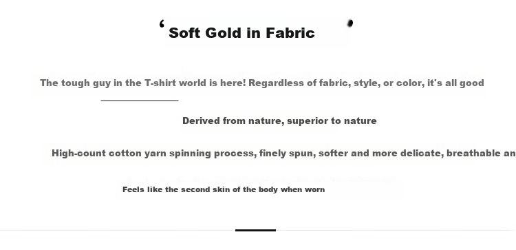 **Fabric:** Soft gold in the fabric, durable in the T-shirt world. Made from high-quality cotton yarn with a high thread count, the fabric is softer, finer, breathable, and skin-friendly. It feels like a second skin when worn.