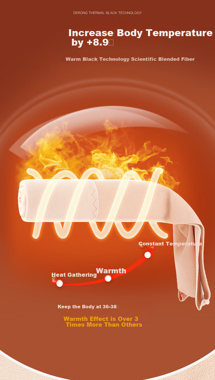 - DERONG THERMAL BLACK TECHNOLOGY: Incorporating premium materials such as merino wool, mulberry silk, and warm fluff for luxurious warmth and skin nourishment.