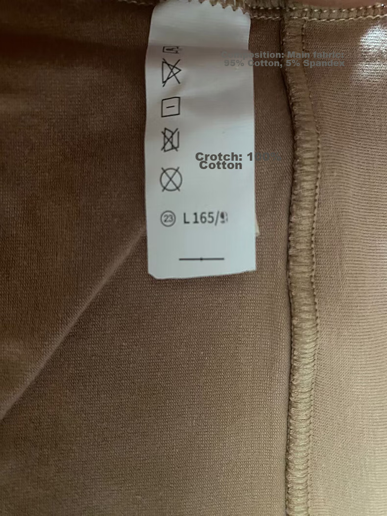 **Main Fabric:** 95% Cotton, 5% Spandex; Crotch Lining: 100% Cotton