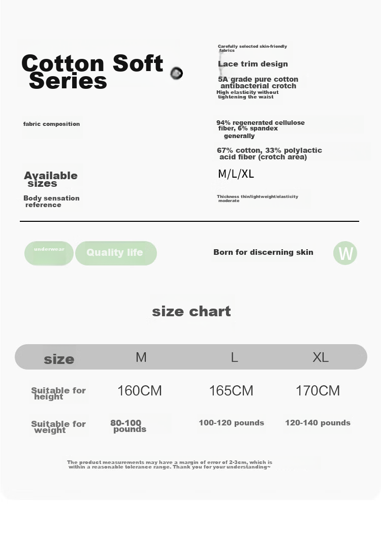 **Product Name:** Comfortable Underwear, Natural Lactic Acid Series, High Antibacterial, 5A Antibacterial Crotch Women's Underwear