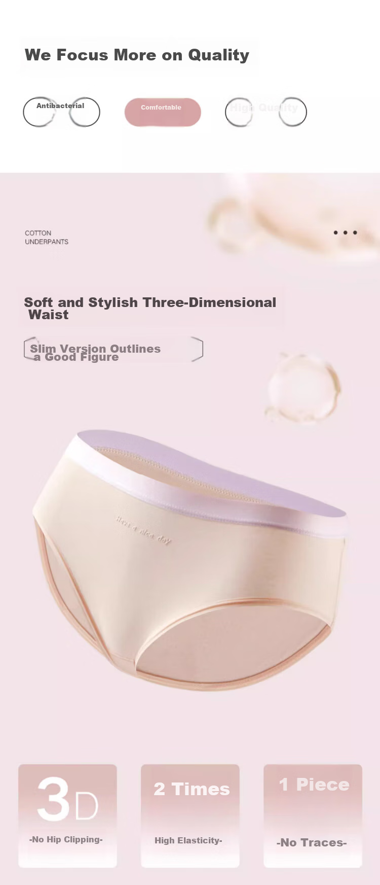 - High-quality 5A antibacterial 100% cotton crotch for sensitive skin