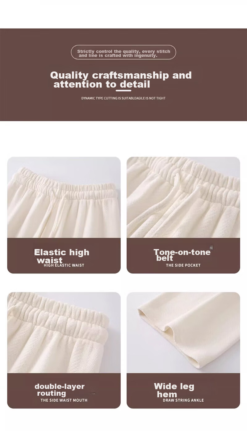 **Quality Assurance:** Each pair of pants is meticulously crafted with attention to detail and quality. The design features a high elastic waist, side pockets, double stitching, and drawstring ankles for added style and functionality.