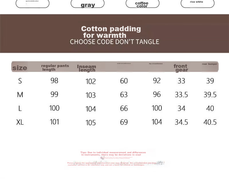 - XL: Waist 69cm, Hip 104cm, Front Rise 34.5cm, Back Rise 40.5cm