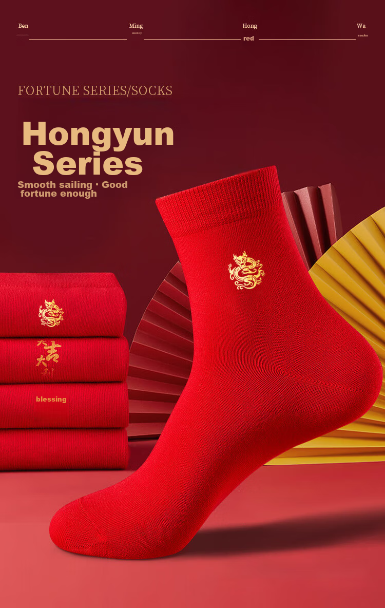 Each pair of LangSha Fortune Series socks is designed to bring good luck and prosperity, featuring traditional Chinese symbols and high-quality materials for comfort and longevity.