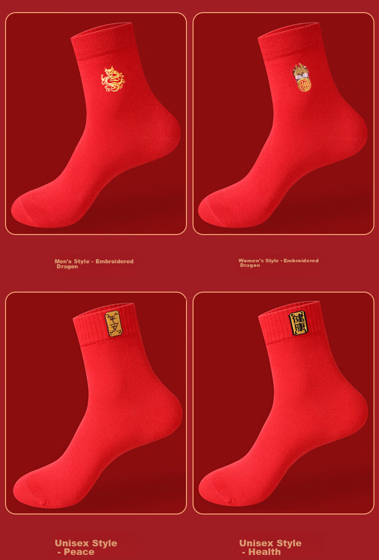 **Designs:** Dragon Embroidery (Men's), Dragon Embroidery (Women's), Peace (Unisex), Health (Unisex), Wealth (Unisex), Good Luck (Unisex), Great Prosperity (Unisex), Peace and Joy (Unisex), Blessing (Unisex), Solid Color (Unisex)