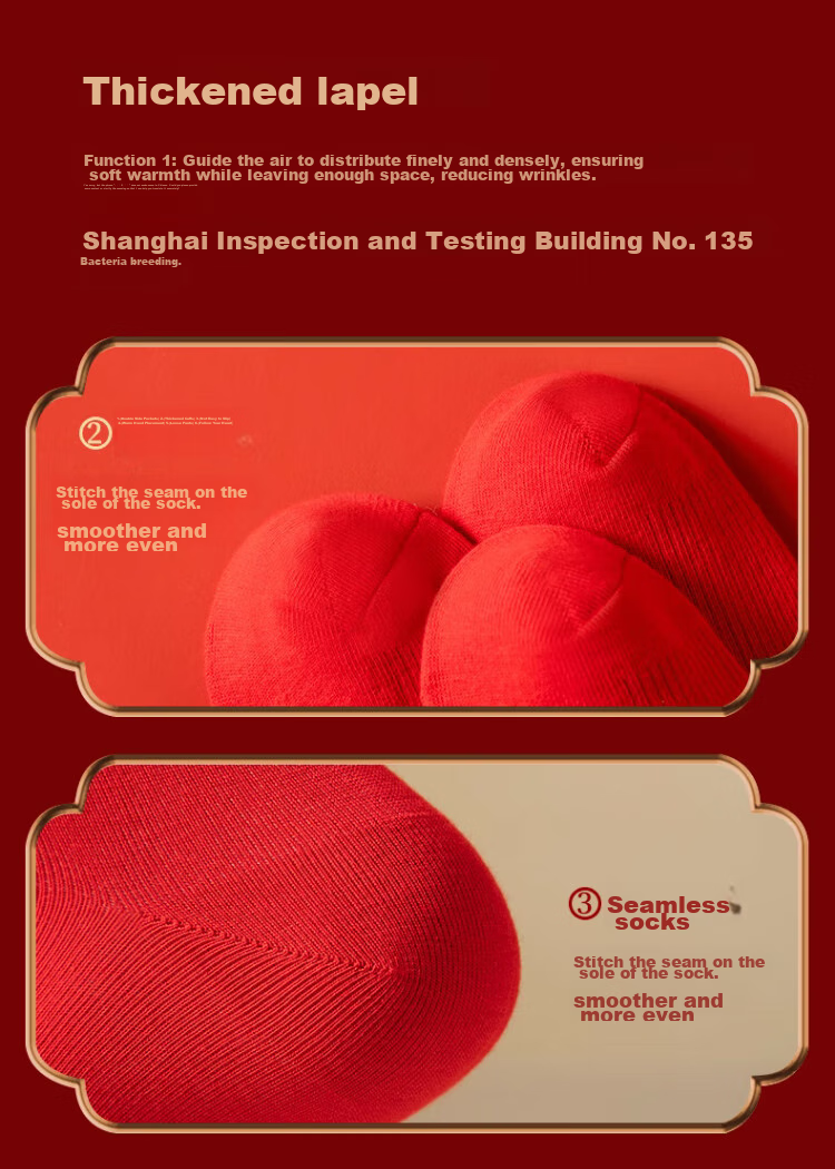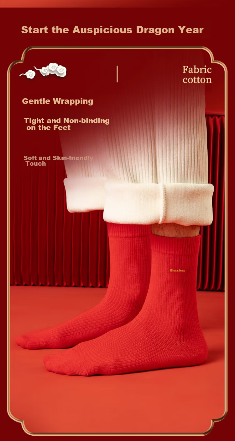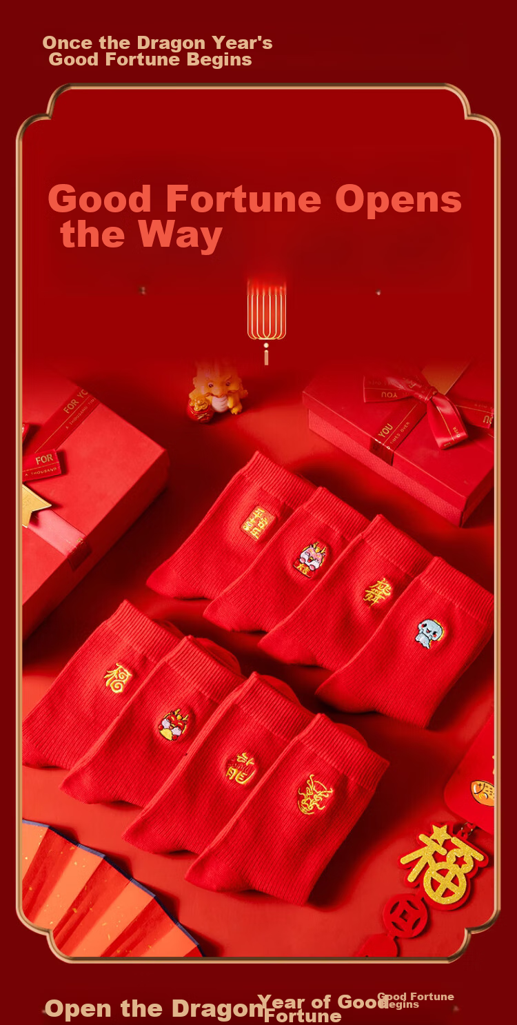 These LangSha Good Luck Series couple socks are made of high-quality cotton fabric, featuring intricate embroidery and a comfortable fit. The design includes double needle construction for breathability and moisture control, ensuring a dry and cozy feel. The socks are antibacterial, anti-pilling, and have a symbolic red color representing good fortune. Perfect for ushering in the Chinese New Year with style and auspiciousness.
