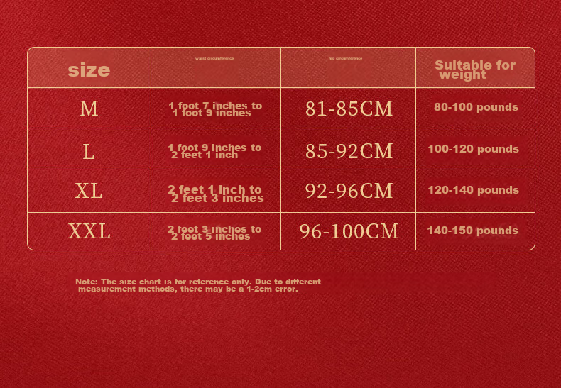 - M: Waist 81-85CM, Hip 80-100 pounds