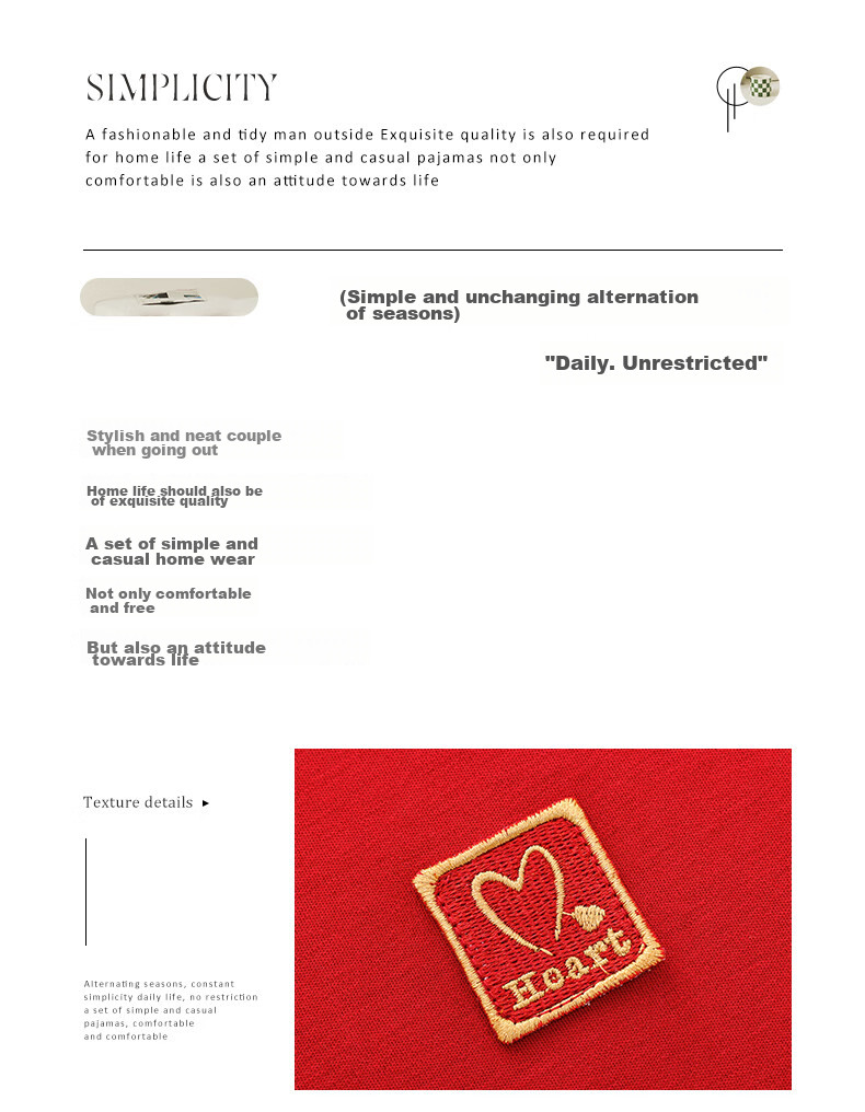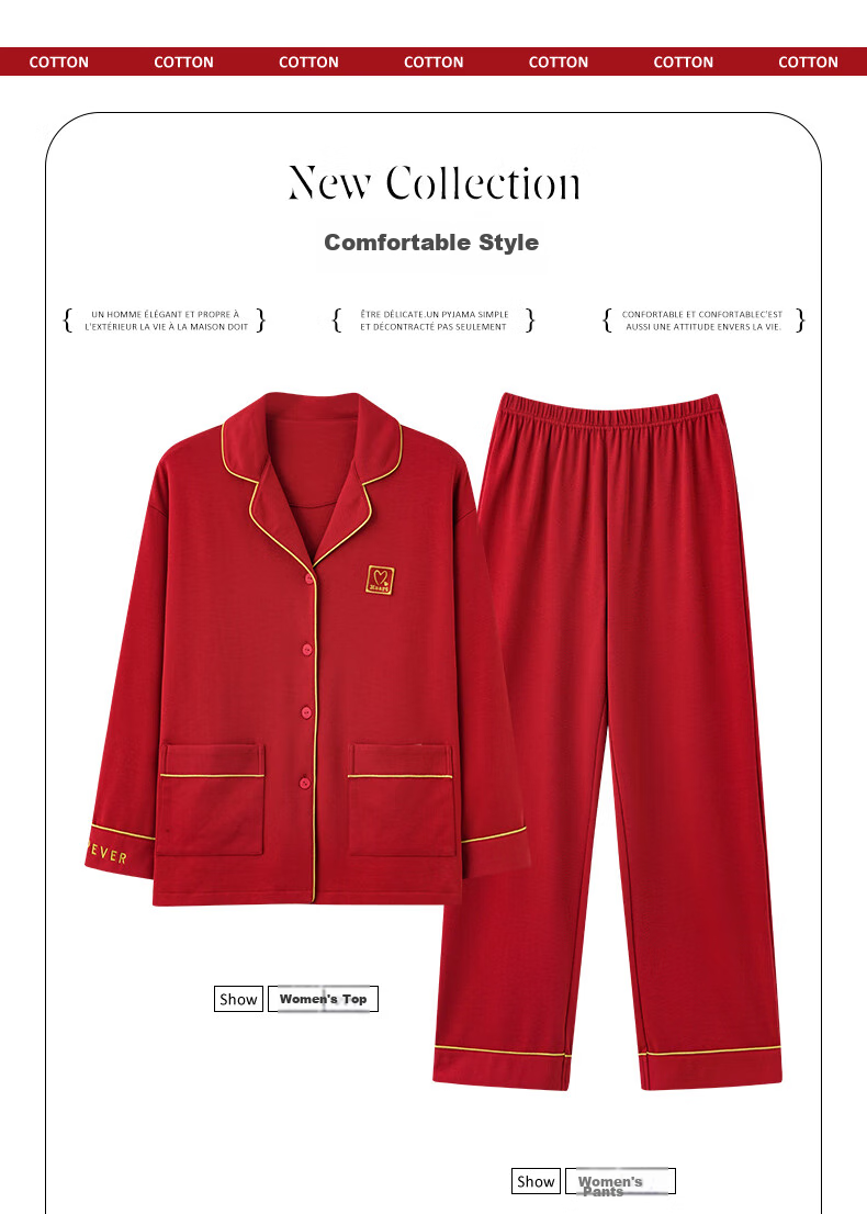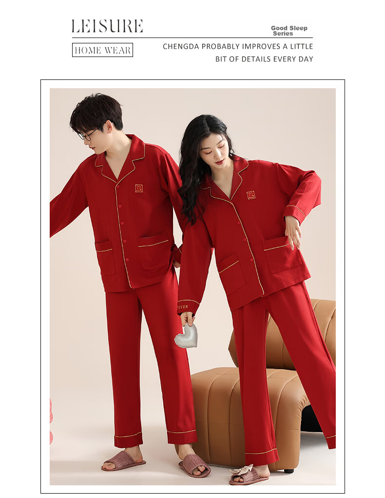**Description:** A collection of comfortable and casual pajamas for both men and women, designed for a relaxed and quality lifestyle. The fabric is made of 85% polyester fiber and 15% cotton, ensuring comfort, breathability, and skin-friendliness.