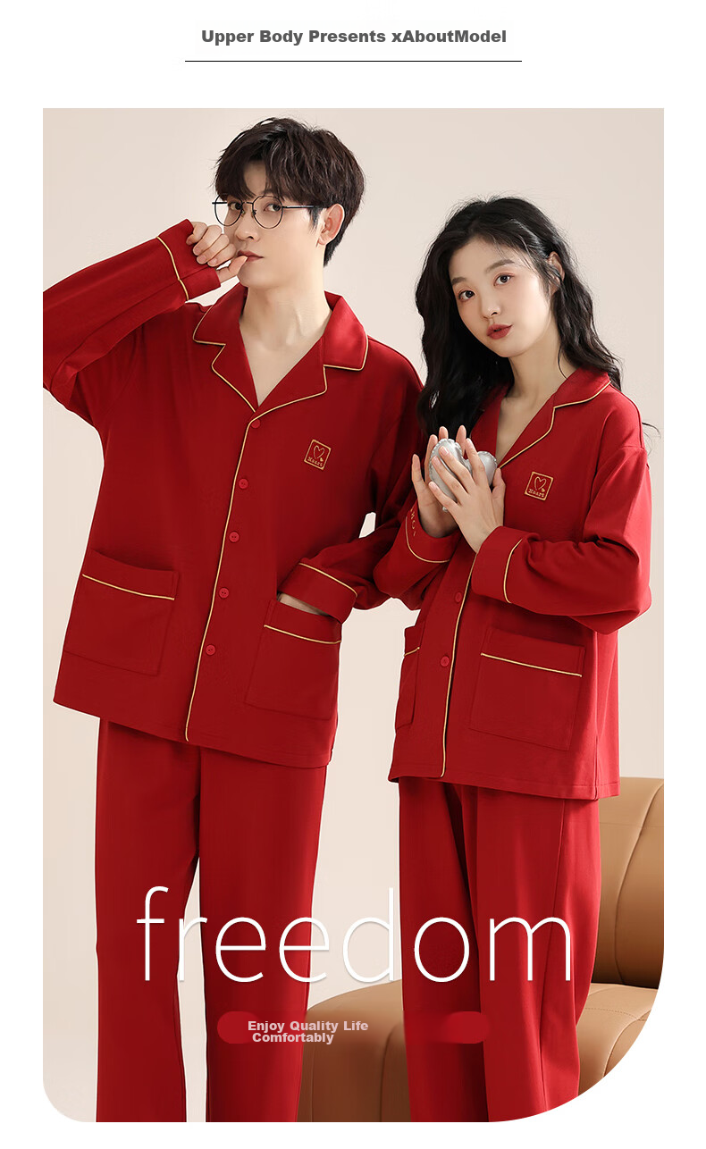 **Model Display:** The pajamas are designed for a comfortable and quality lifestyle, suitable for both indoor and outdoor wear.