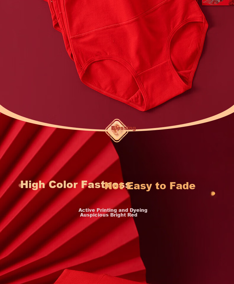 **Printing:** Lucky bright red with active printing and dyeing