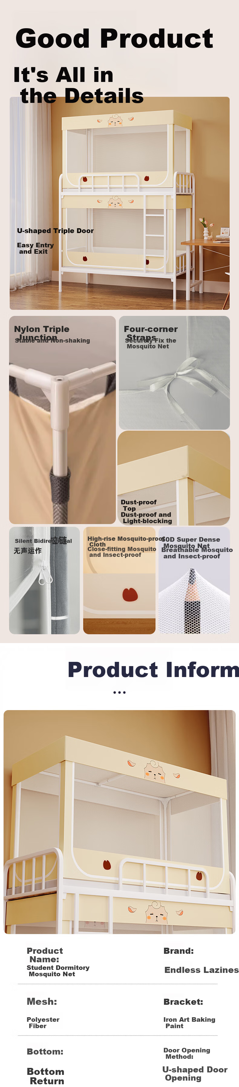 **Conclusion:** Lazy Unlimited Student Dormitory Mosquito Net is a high-quality, durable, and safe choice for mothers and students, offering top-notch protection against mosquitoes and dust.