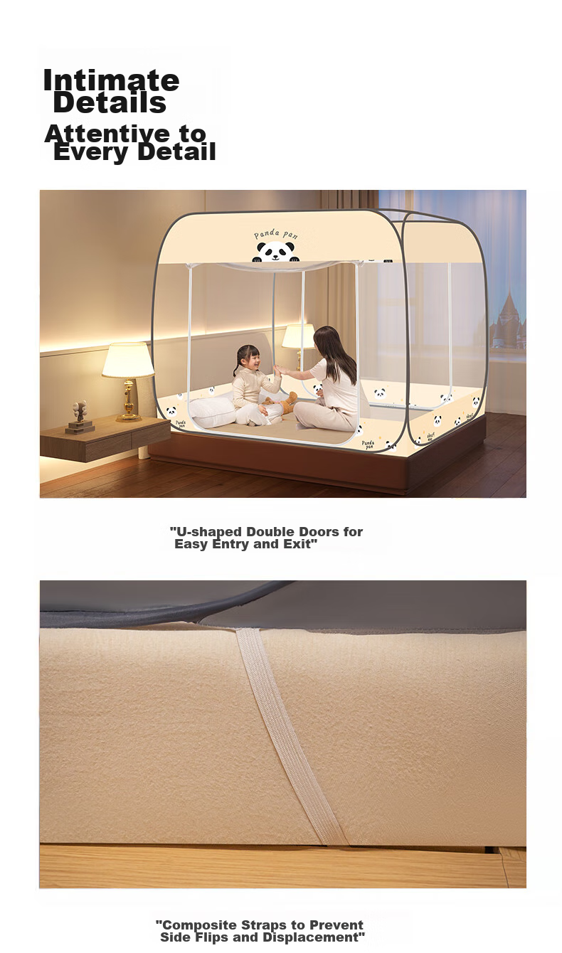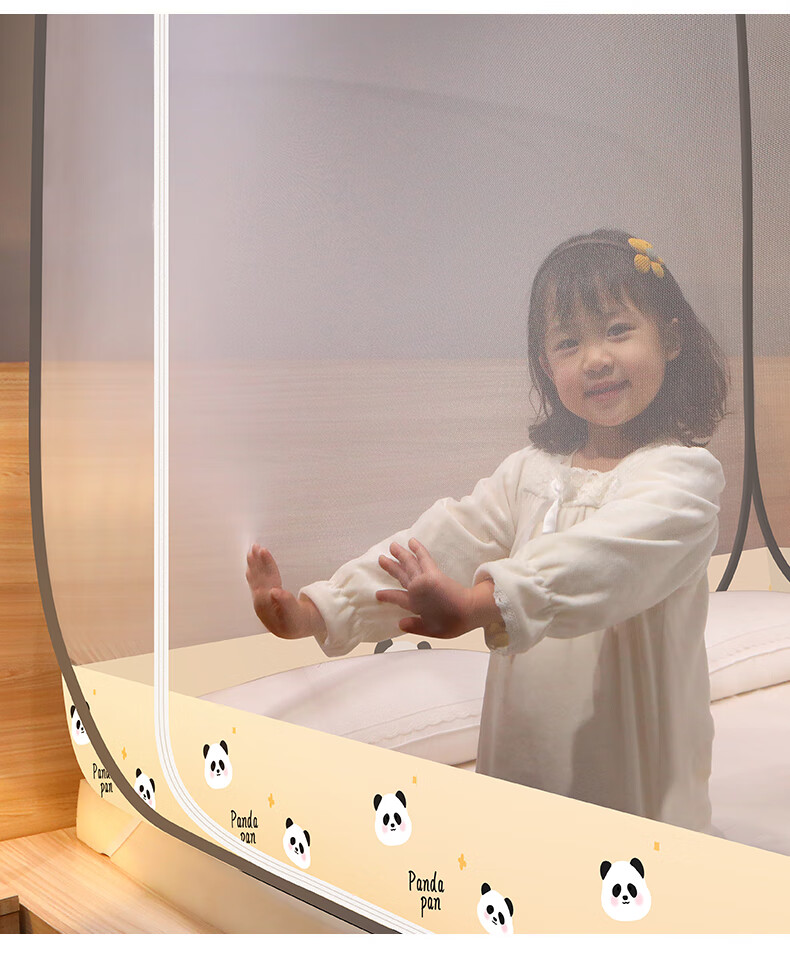 Lazy Unlimited Class A Household Baby Anti-fall Mosquito Net Mongolian Yurt Mosquito Net Frame Free Installation Double Door 1.8*2m【Foldable】