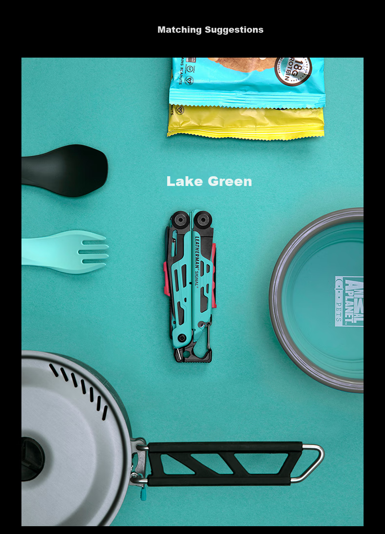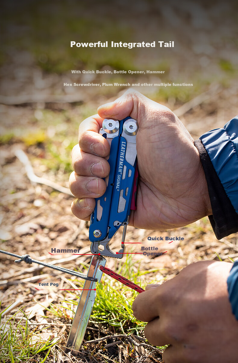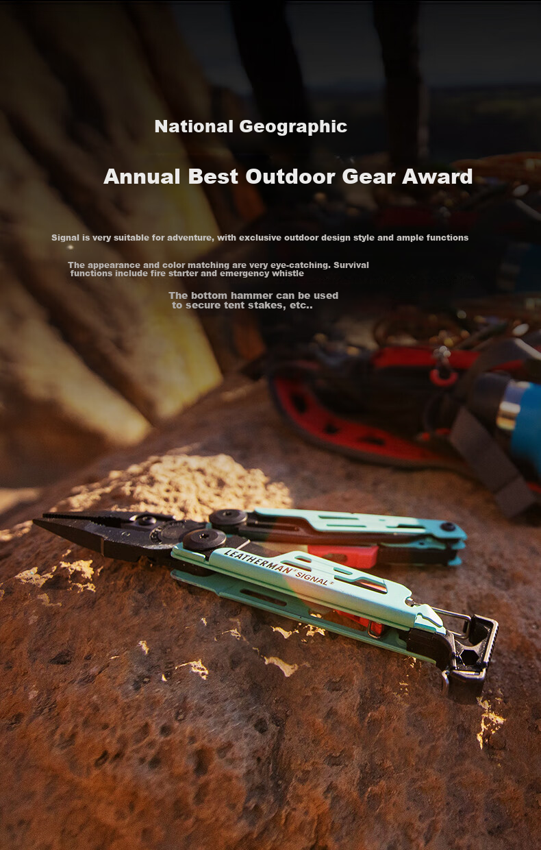 **Description:** The SIGNAL is a versatile outdoor tool designed for survival and emergency situations. It has won the National Geographic Best Outdoor Gear Award and is ideal for adventurers with its distinctive outdoor design, ample functions, and eye-catching appearance. Features include a fire starter, emergency whistle, hammer for tent stakes, and more.