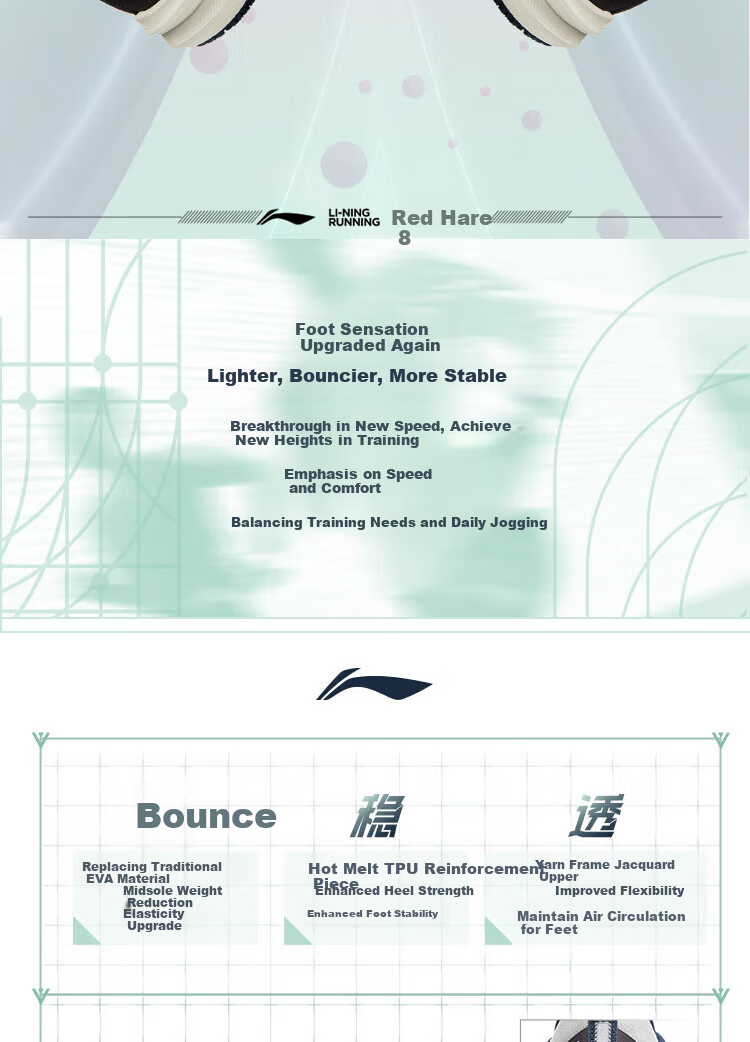 Features replace traditional EVA material with hot melt TPU reinforcement and yarn jacquard upper