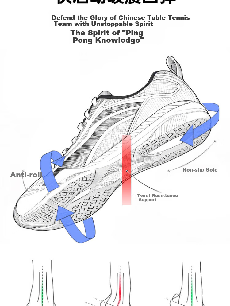 Additional details: Designed for table tennis, shock absorption, wear resistance, stability, anti-twist support