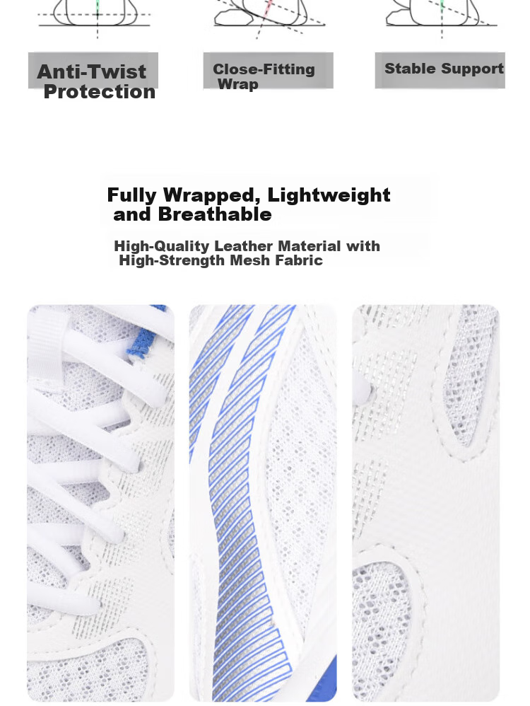 Features: Breathable, stable, anti-twist, wear-resistant, non-marking sole
