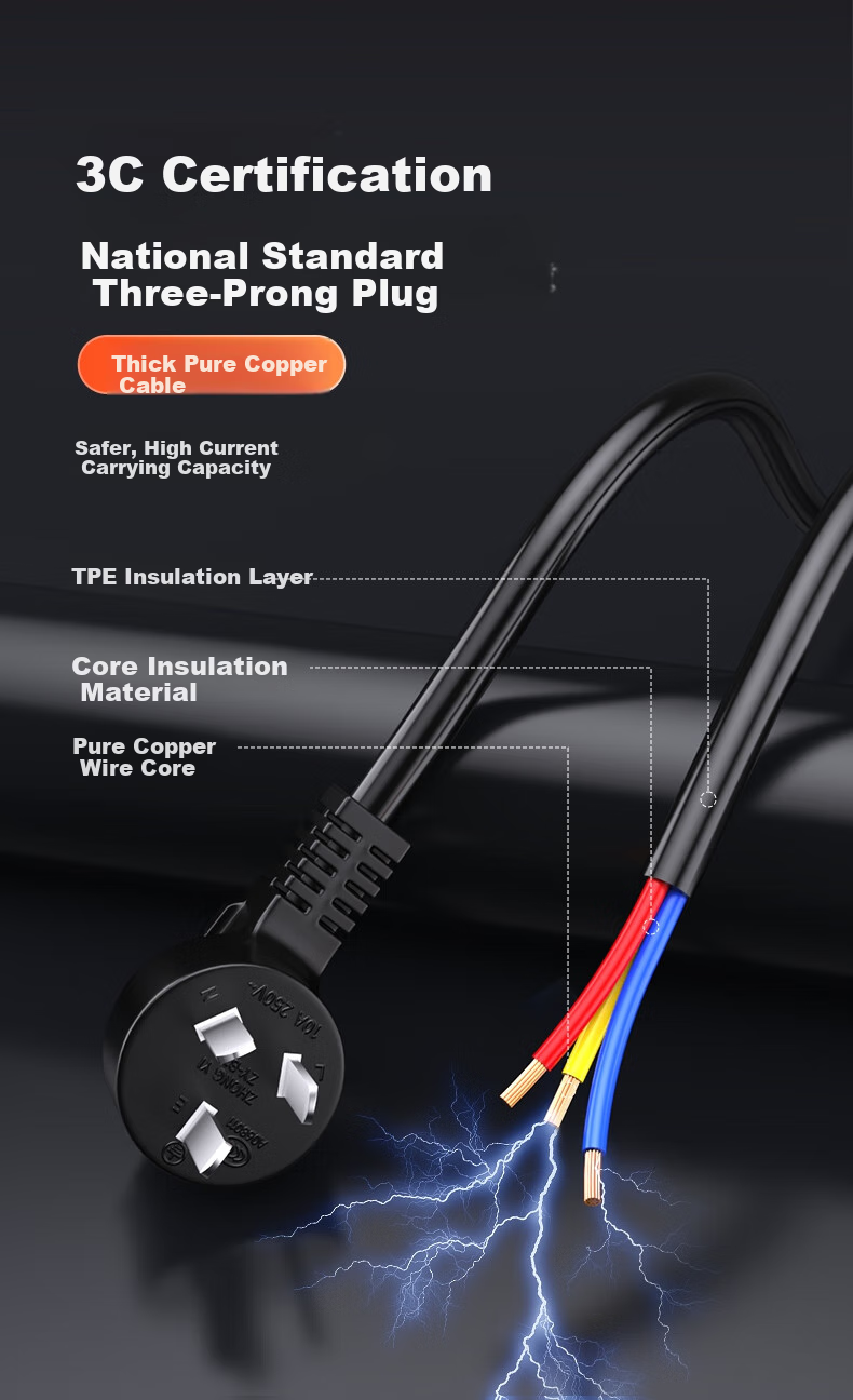 **Certifications:** 3C certified, with thick pure copper cables and TPE insulation