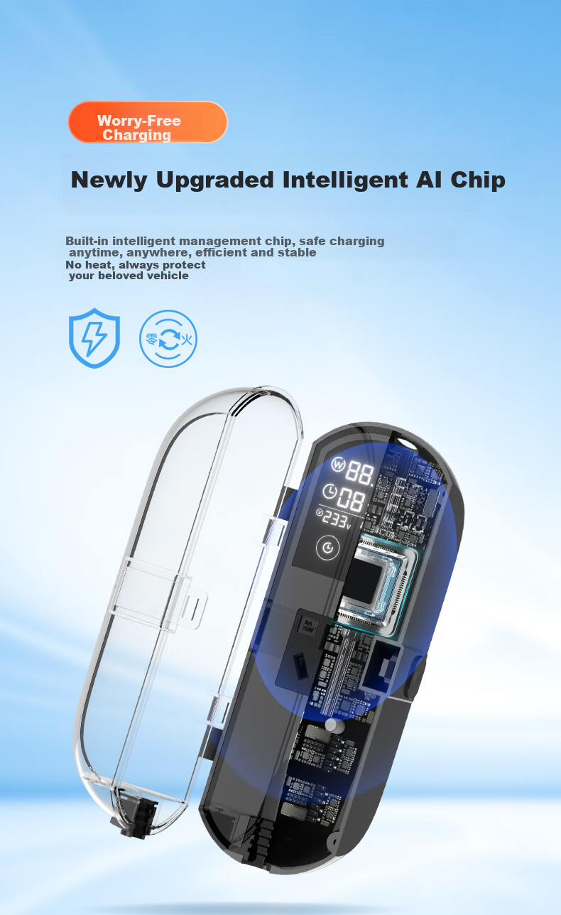 **Intelligence:** Upgraded with smart AI chip for safe and efficient charging, with automatic stop when fully charged