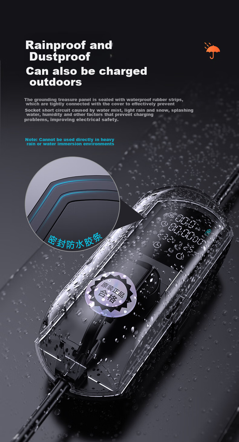 **Safety:** Enhanced safety features including waterproof sealing design, protection against short circuits caused by water, mist, rain, snow, splashes, and humidity