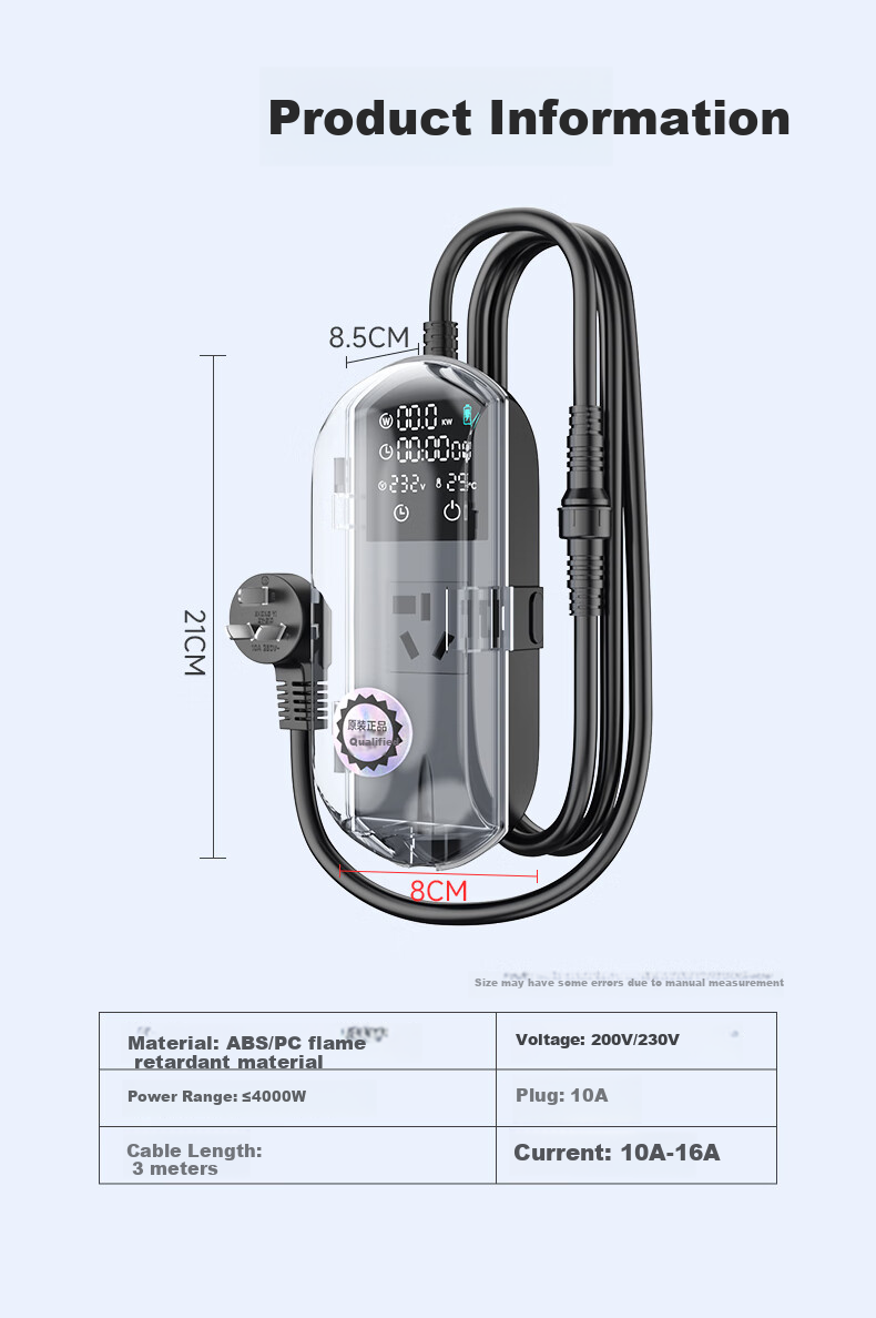 **Usage:** Suitable for 10A-16A plugs, power range up to 4000W