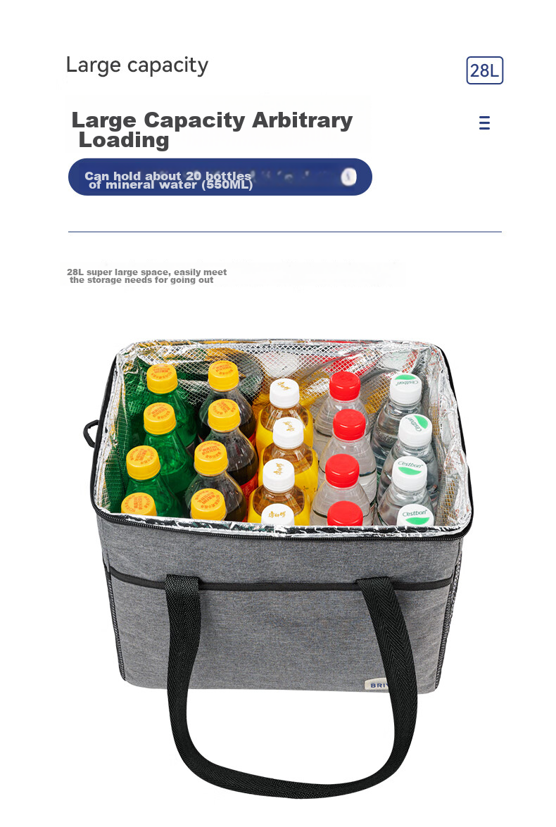 Features a large capacity of 28L, capable of holding approximately 20 bottles of 550ml mineral water