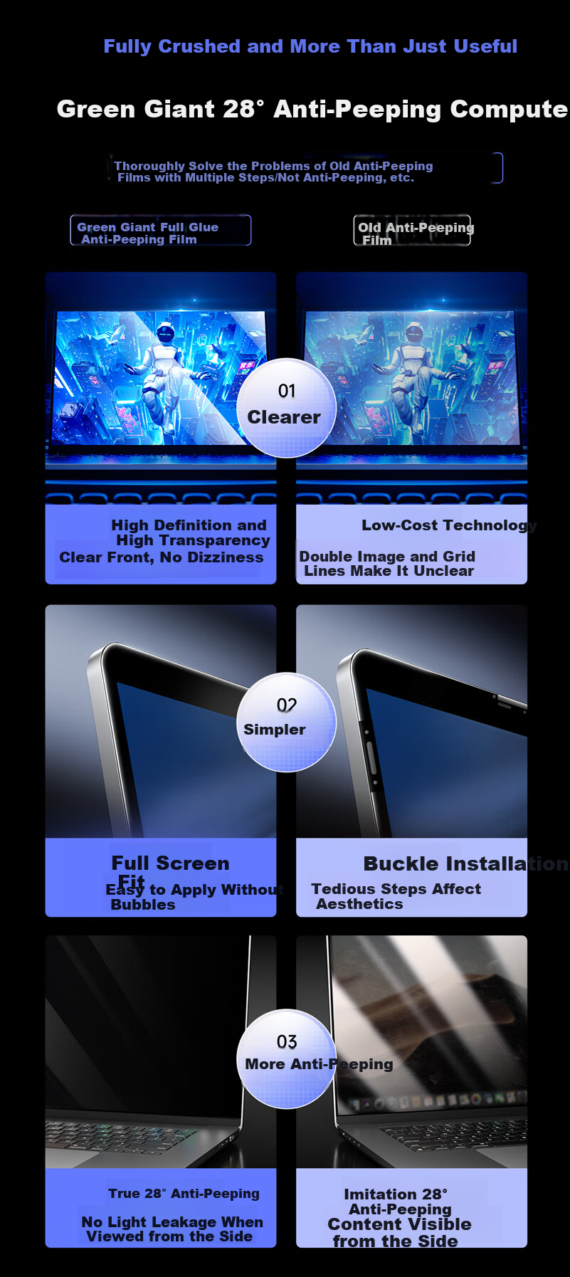 Additional Information: The screen protector is designed to provide privacy protection, anti-glare, and scratch resistance, ensuring a clear and comfortable viewing experience in various lighting conditions. It is easy to install and maintains screen visibility while protecting against visual hacking and glare.