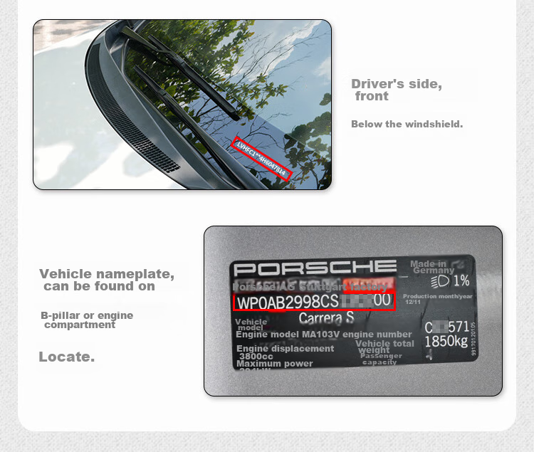 - Locations to find VIN: Vehicle registration certificate, license plate number, vehicle type, owner information, brand/model, vehicle identification code, engine number, registration date, issuance date.