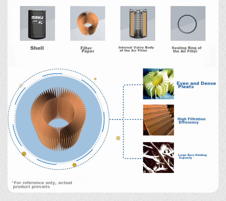 - Components: Shell, filter paper, internal valve body, and sealing ring of the oil filter are uniformly folded and dense, providing high filtration efficiency and dust holding capacity.