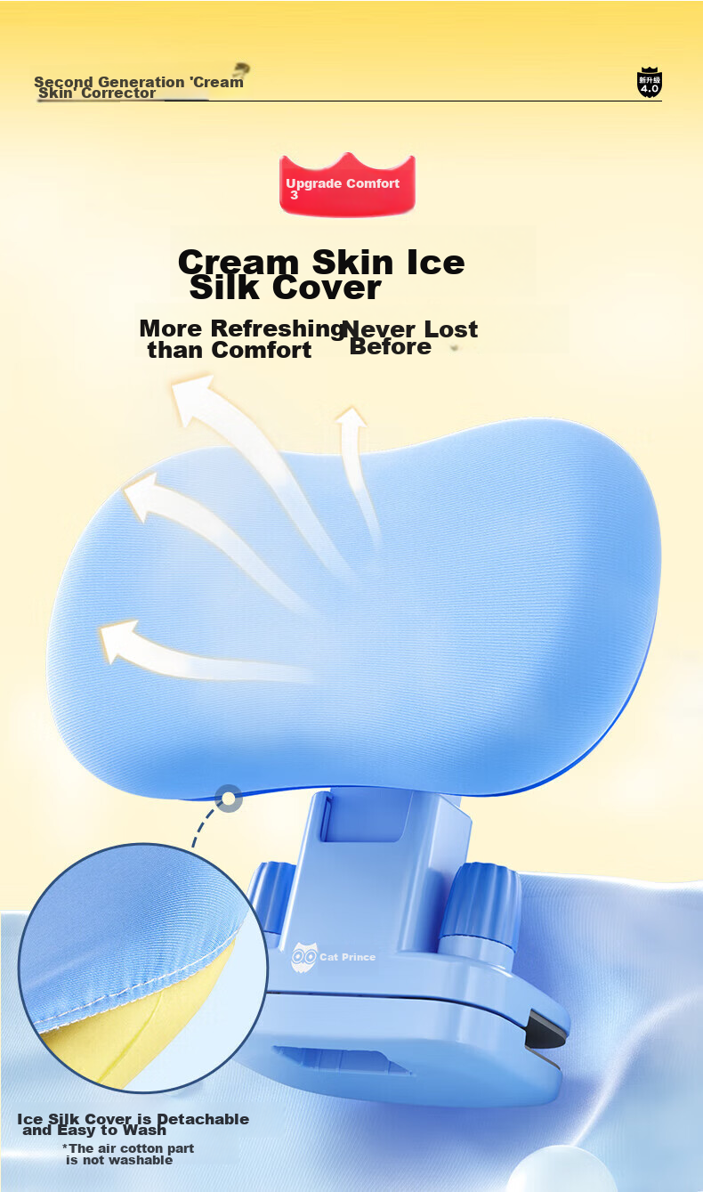 **Additional Information:** Ice silk pillowcase for added comfort, 47cm posture correction pad, adjustable height for optimal viewing angle, prevents wrist strain while writing