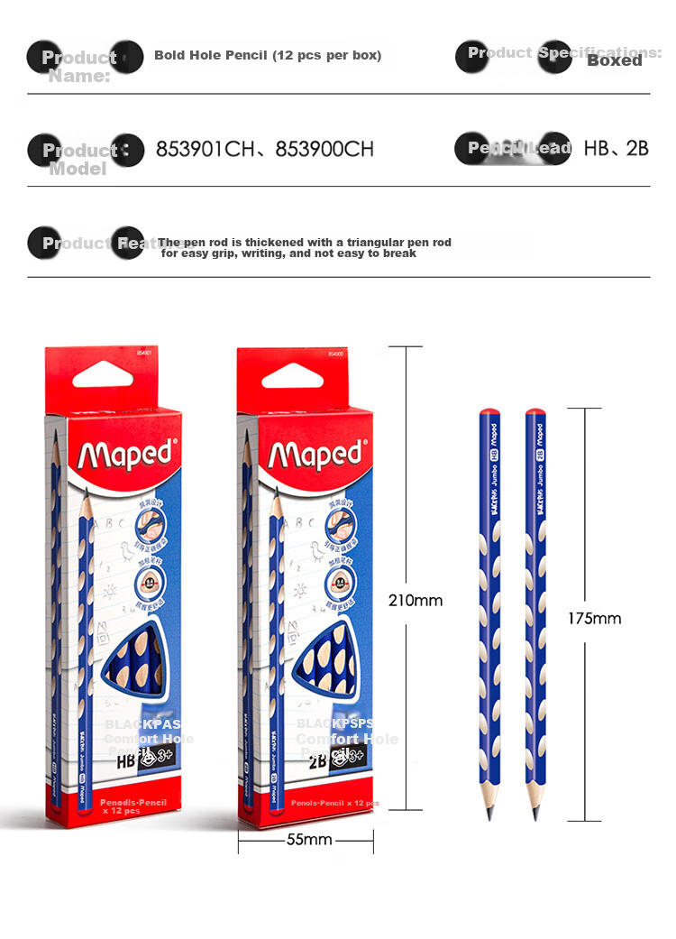 **Product Features:** Thickened triangular pen holder for easy grip and smooth writing, Maped logo