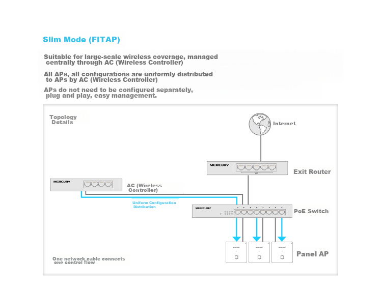 - Centralized management with AC (Wireless Controller)