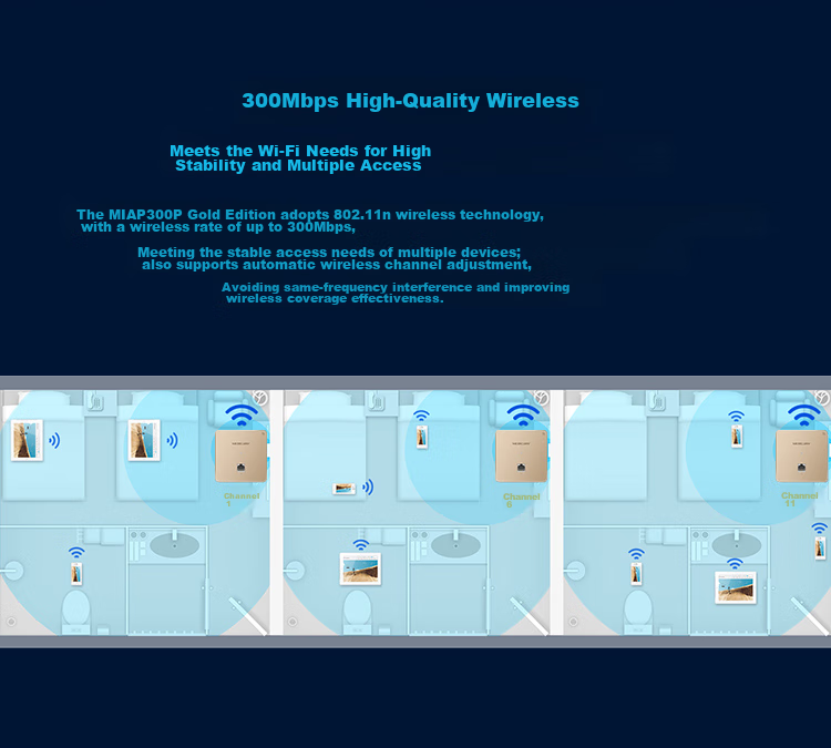 **Note:** The MIAP300P Gold Edition is designed to provide high-quality, stable Wi-Fi connectivity for various environments, offering a seamless and interconnected experience for users.