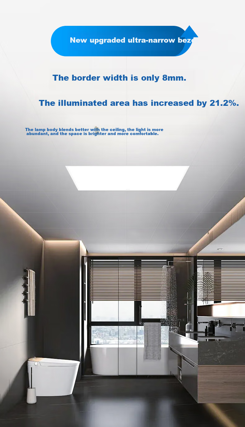 **Design:** Upgraded ultra-narrow bezel with a width of only 8mm, increasing the illuminated area by 21.2%. The light fixture seamlessly integrates into the ceiling, providing ample light and a bright, comfortable space.