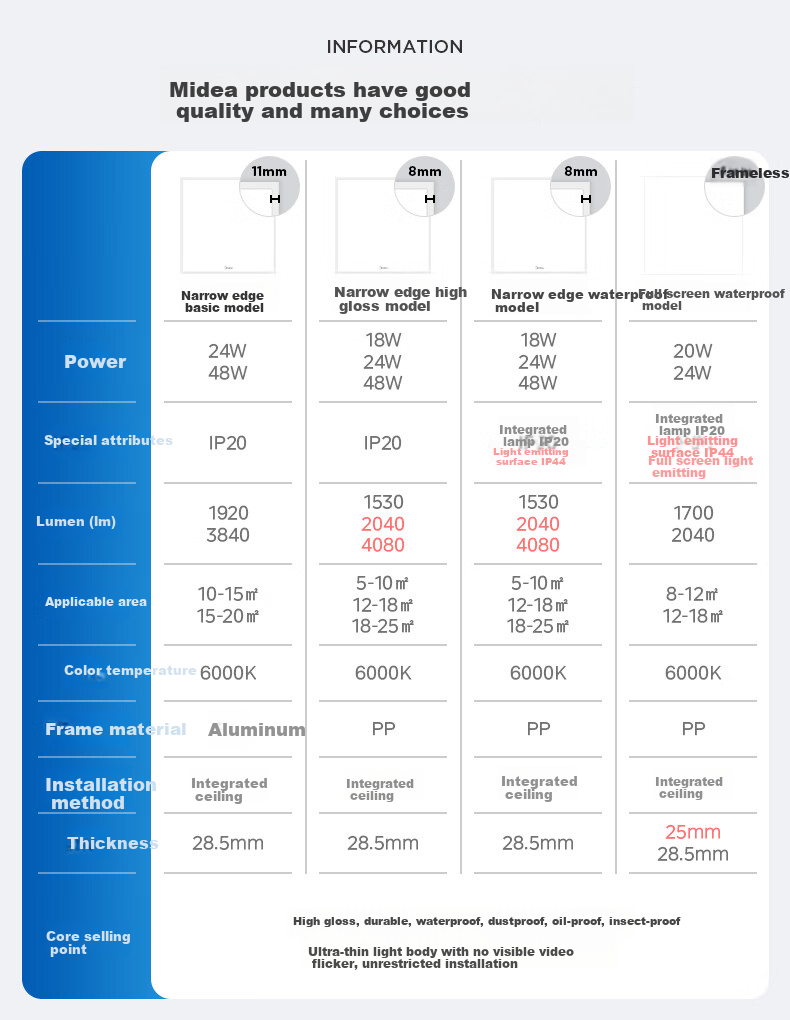 - **Core Selling Points:** Ultra-thin design, easy installation, no visible flicker