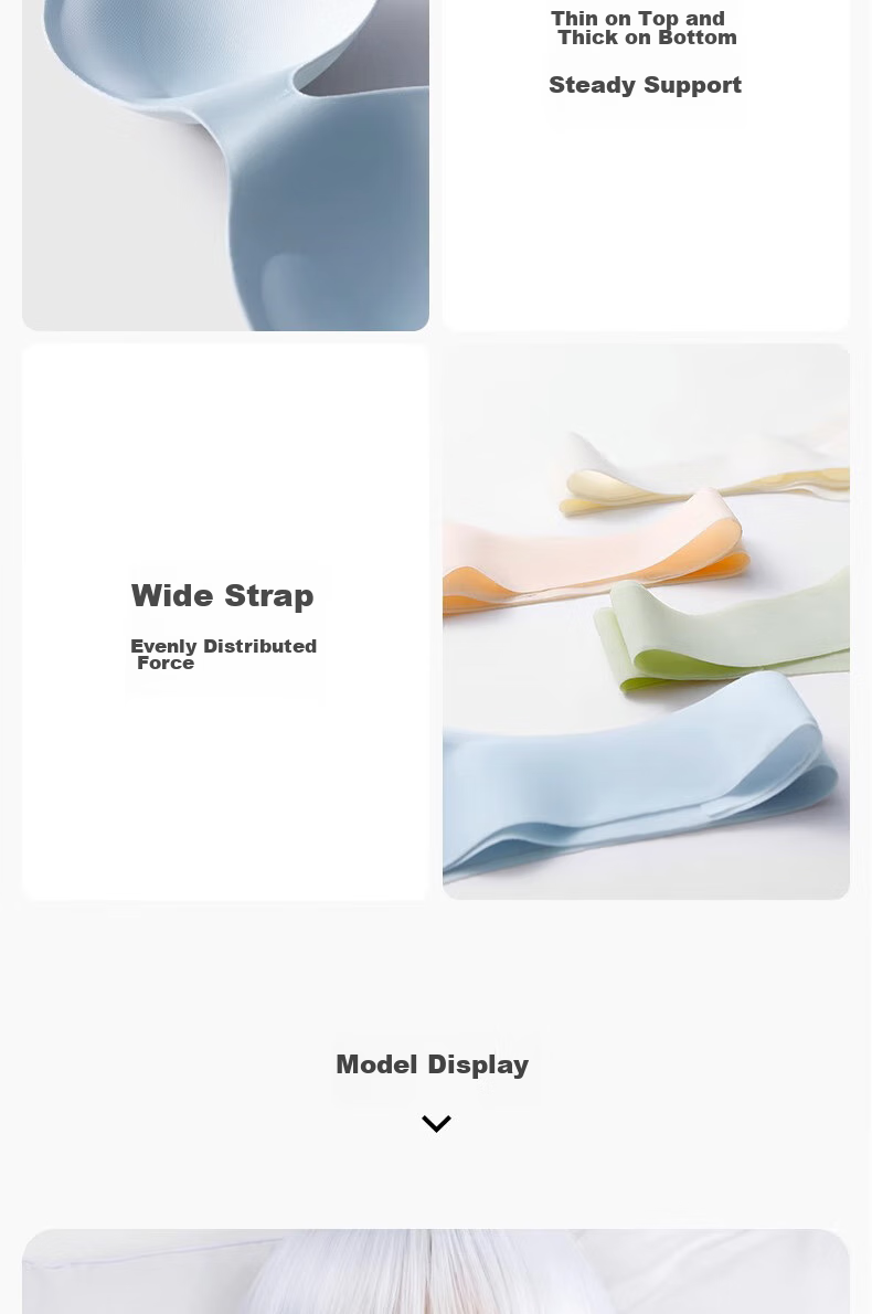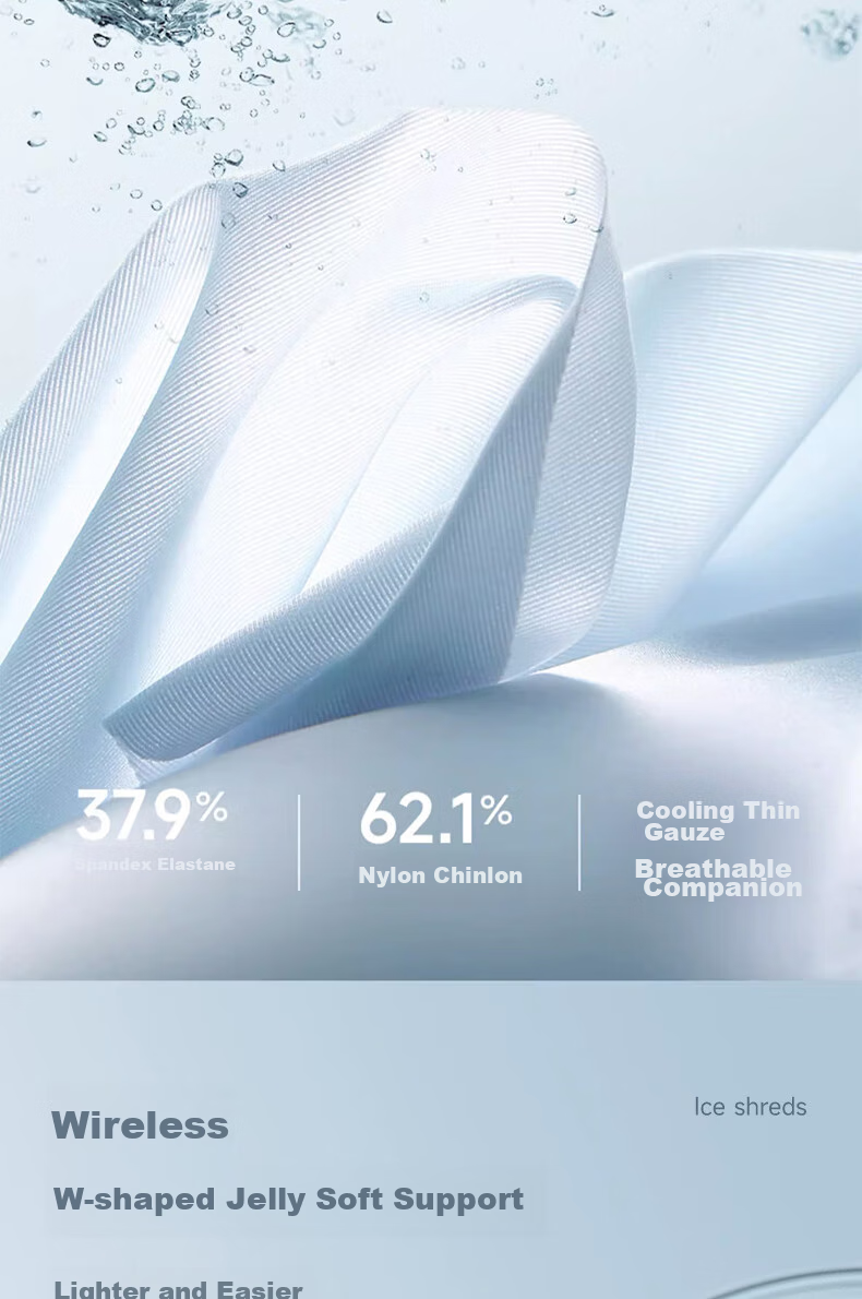 Cup Design: Lightweight and breathable with soft support, "Cat Ear" elastic jelly strips, 1000+ comfortable breathable holes