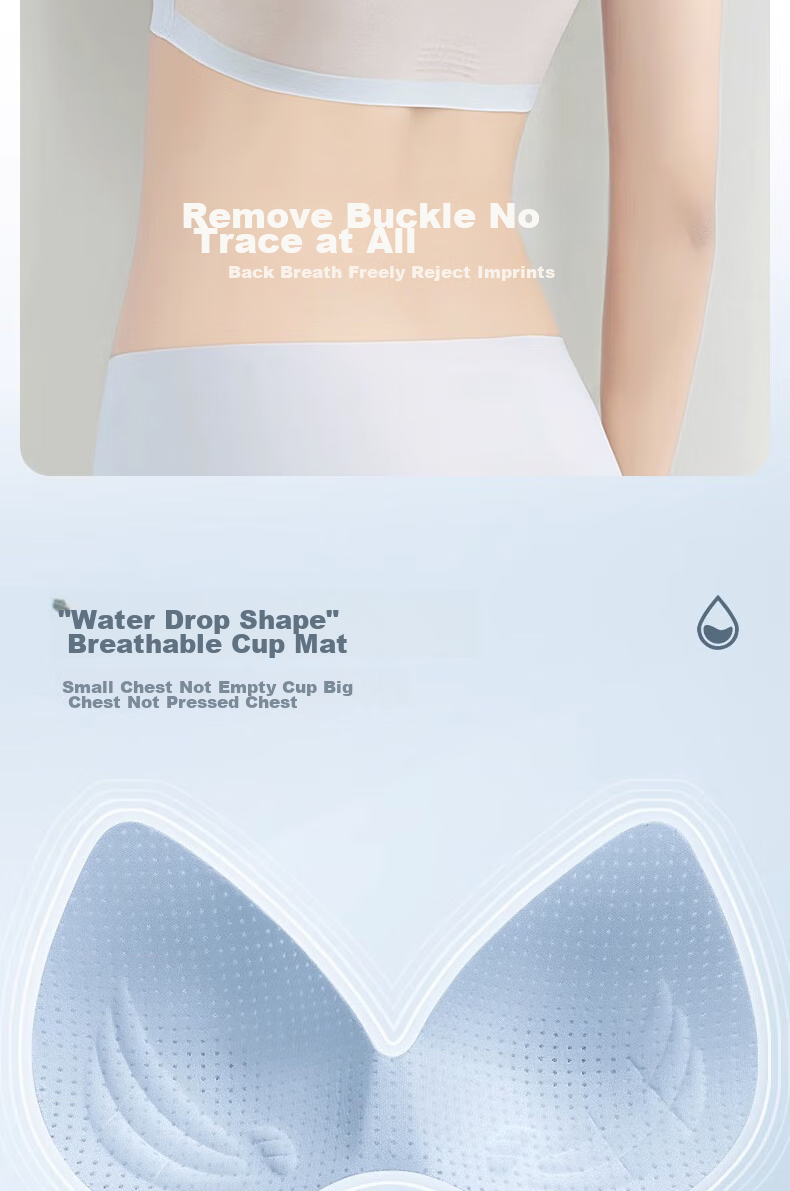 Closure: Seamless back with water drop-shaped breathable cup pads