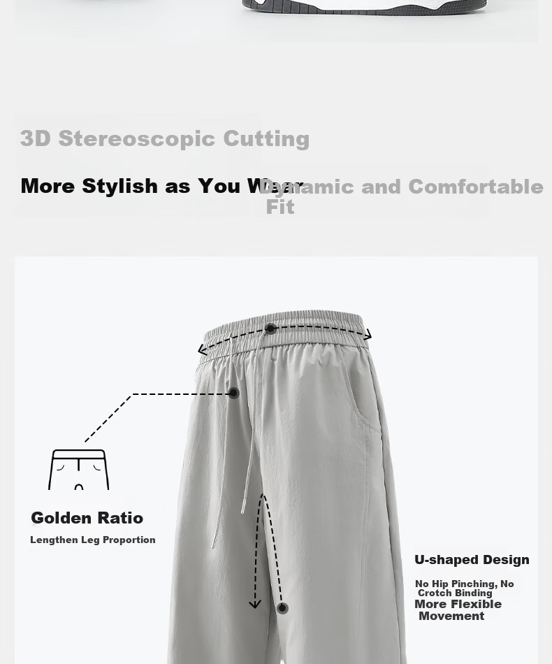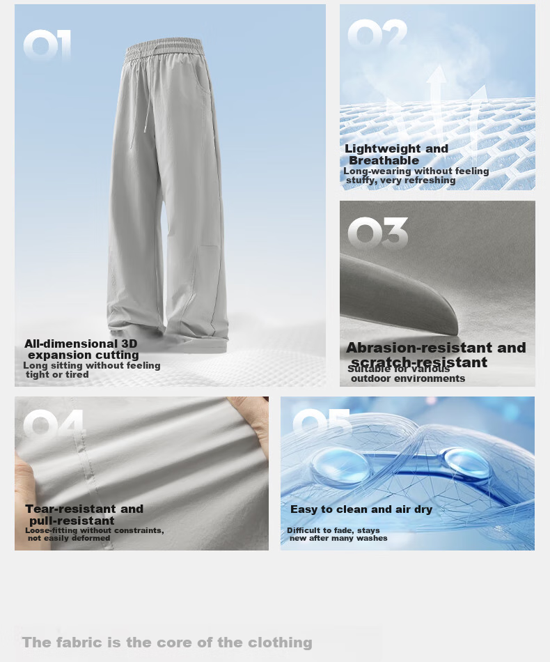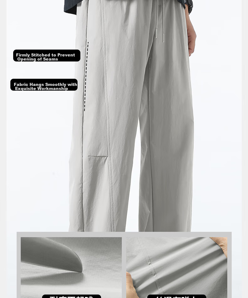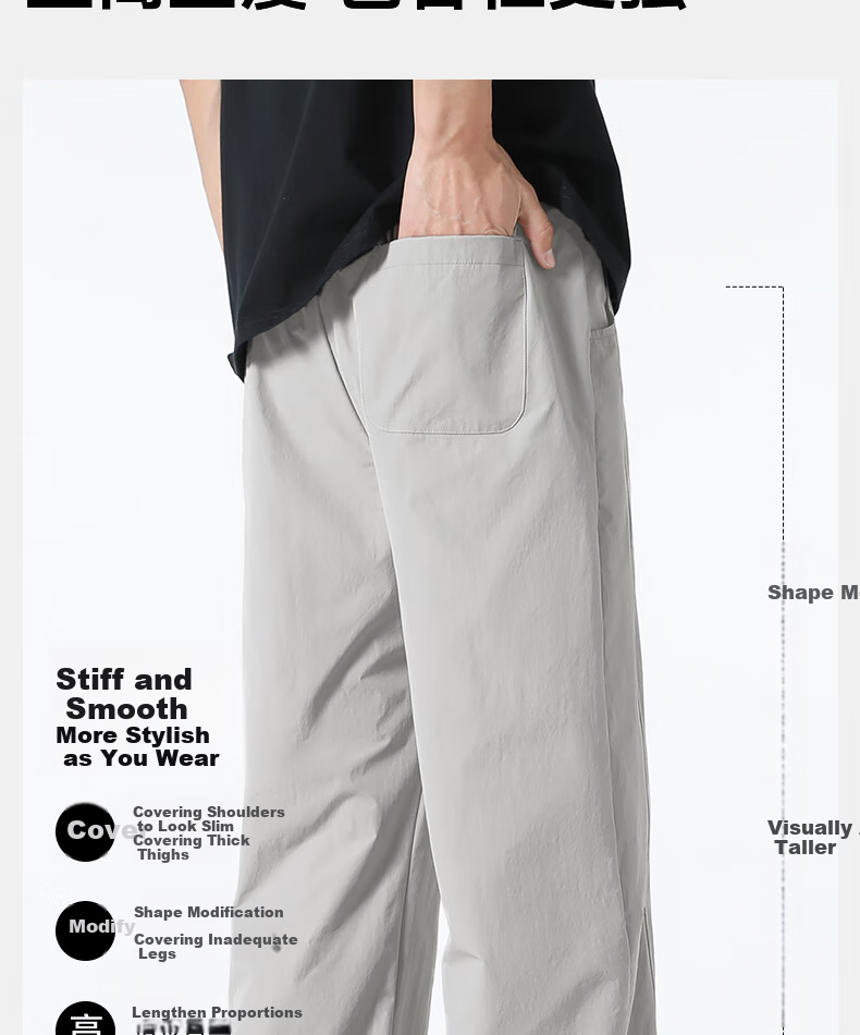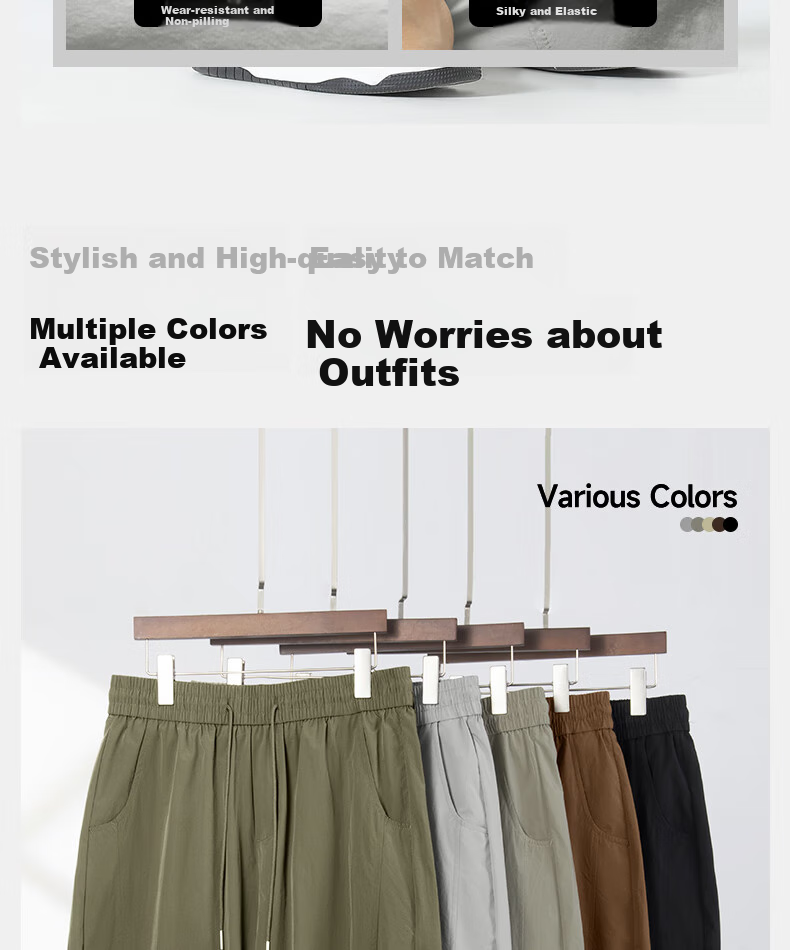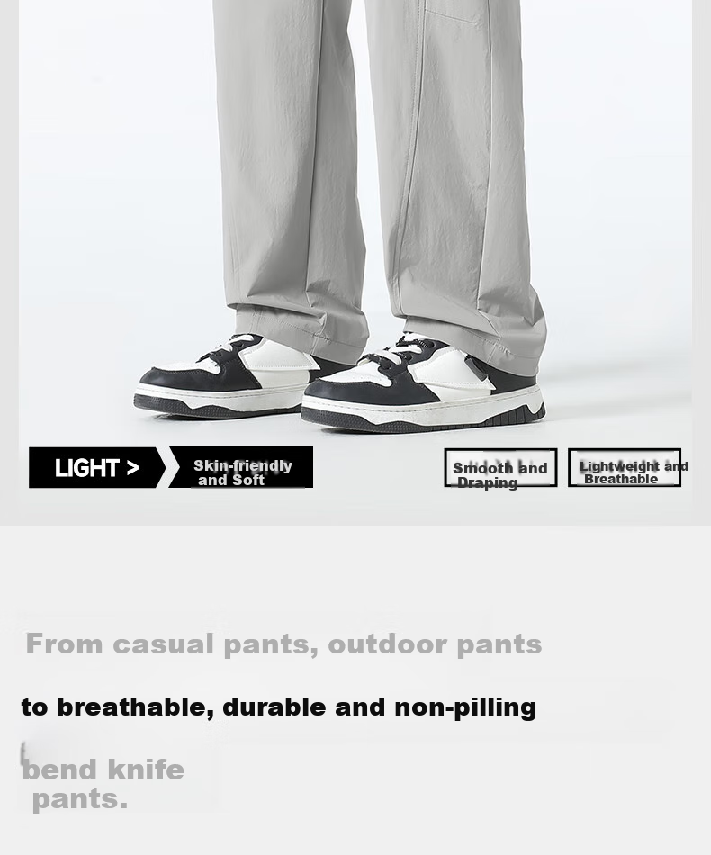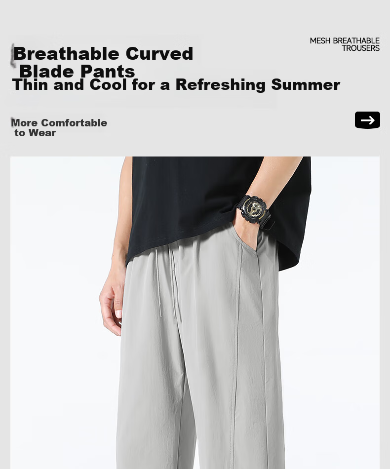 **Description:** Lightweight and breathable curved pants for a cool summer, providing a comfortable wearing experience. Made of skin-friendly, soft, and breathable fabric with a smooth drape. Suitable for casual wear, outdoor activities, and durable wear without pilling.