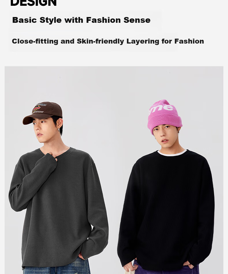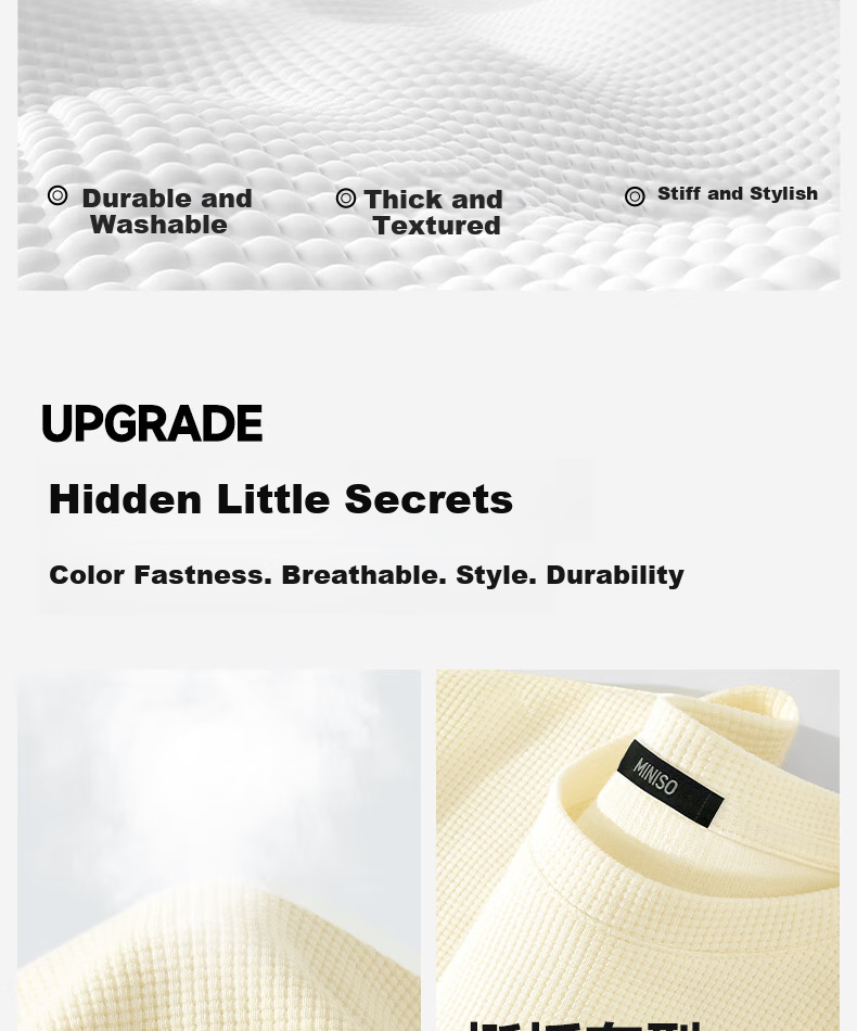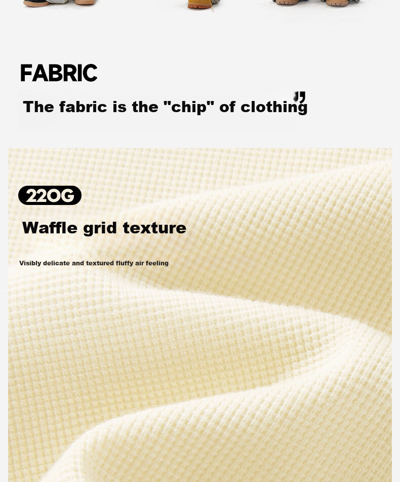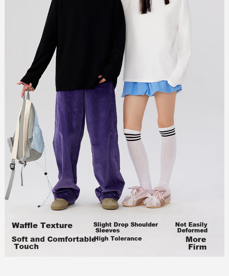 Features: Relaxed fit, waffle texture, dropped shoulder sleeves, resistant to deformation, soft touch, high resilience, structured look
