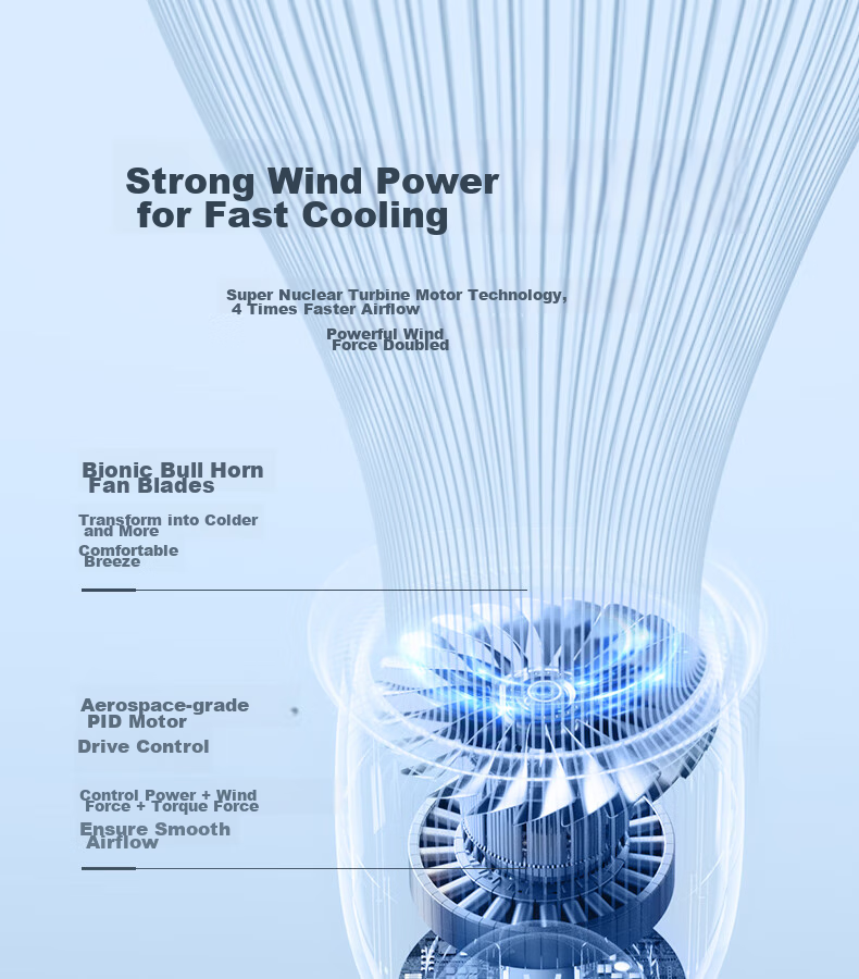 - Equipped with biomimetic horn fan blades for a more comfortable and cooler breeze.