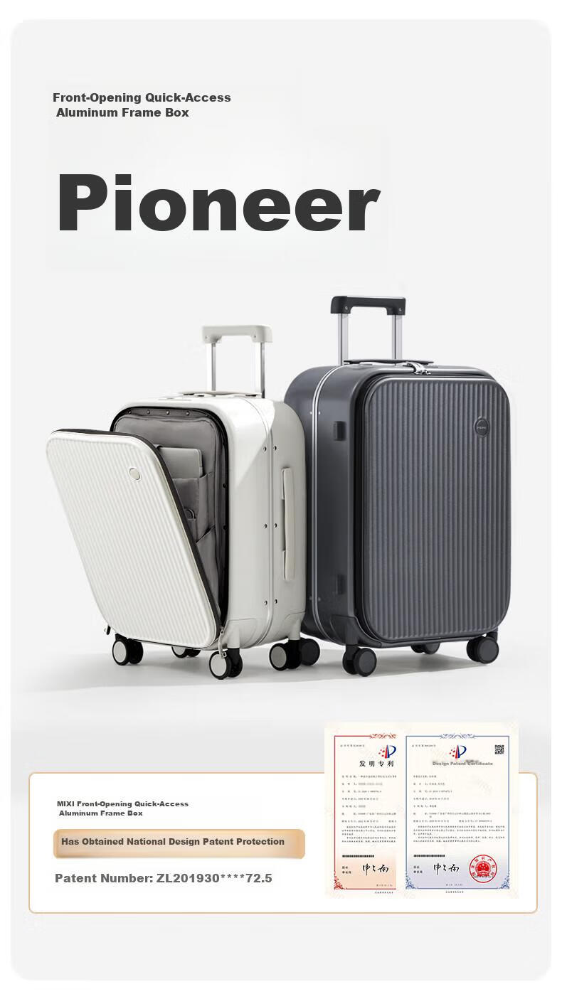 米熙前置条纹开口拉杆箱20英寸小行李侧开箱网红女万向轮轻便密码箱包男登机箱皮箱18英寸